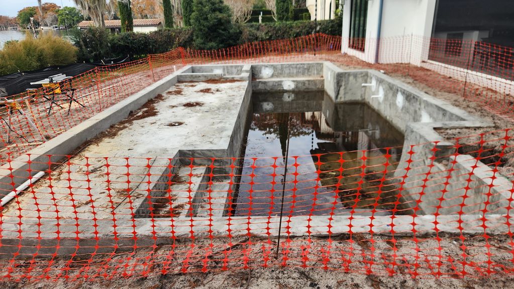 A slope is left at the shallow end of the pool for us to access the interior with our track loader or excavator.